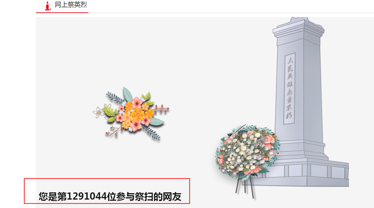 向人民英雄纪念碑敬献花圈,网站上将显示您是第X位参与祭扫的网友。到此,网上祭扫活动完成。