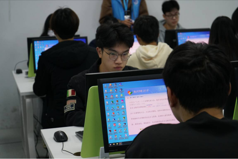 本次比赛采用分组一次性比赛方式进行,每人一台电脑,此次比赛使用金山打字通软件,主要测试选手中文打字速度。易班工作站事先在软件中导入同一篇文章,文章为中国共产党第二十次全国代表大会报告相关内容。随着比赛信号的发出,同学们展开了激烈的打字角逐,教室内充满着紧张的氛围和敲击键盘的声音,参赛选手们都屏气凝神,全神贯注地投入到打字比赛中,目光紧盯着屏幕,极其认真、仔细地完成比赛。