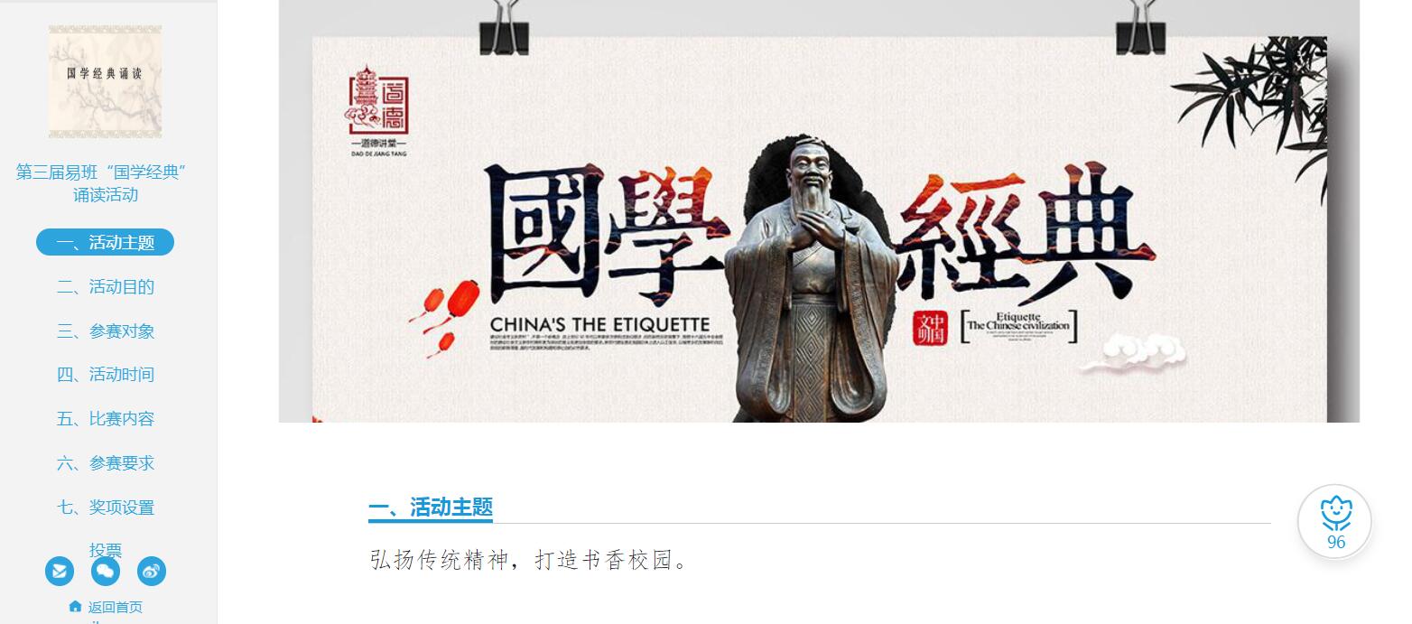 为进一步弘扬民族传统,传承国学经典文化,引领我院学生通过诵读经典诗文,感受祖国传统文化的博大精深,培养他们热爱祖国、孝敬父母、尊敬师长、勤学自强的优良品质,努力营造浓郁的书香校园氛围,我院易班工作站于2021年5月19日至6月10日开展第三届易班“国学经典诵读”活动。