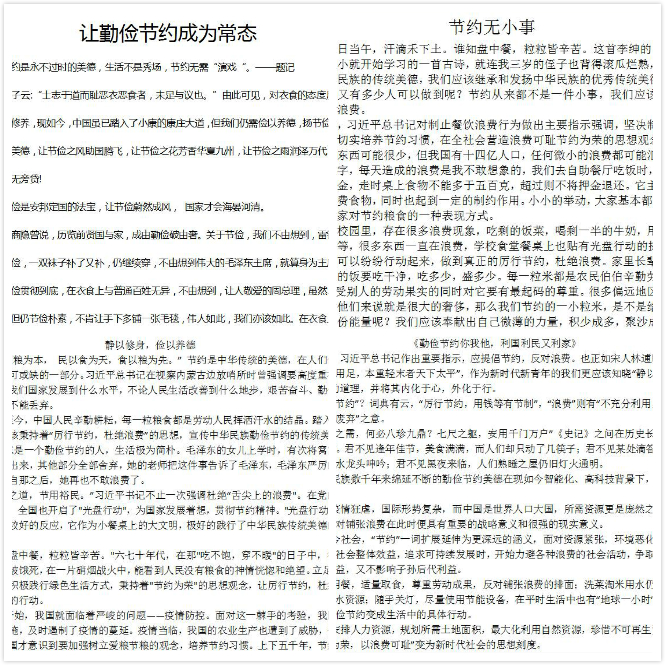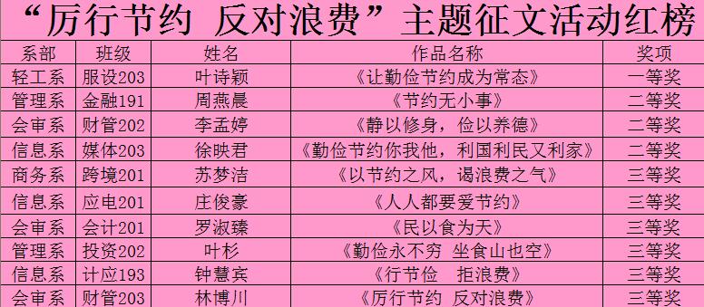 “厉行节约、反对浪费”主题征文比赛获奖作品