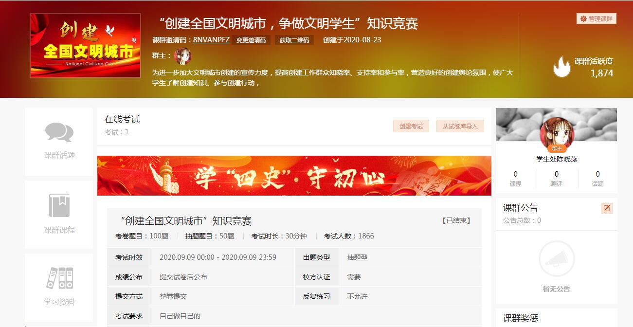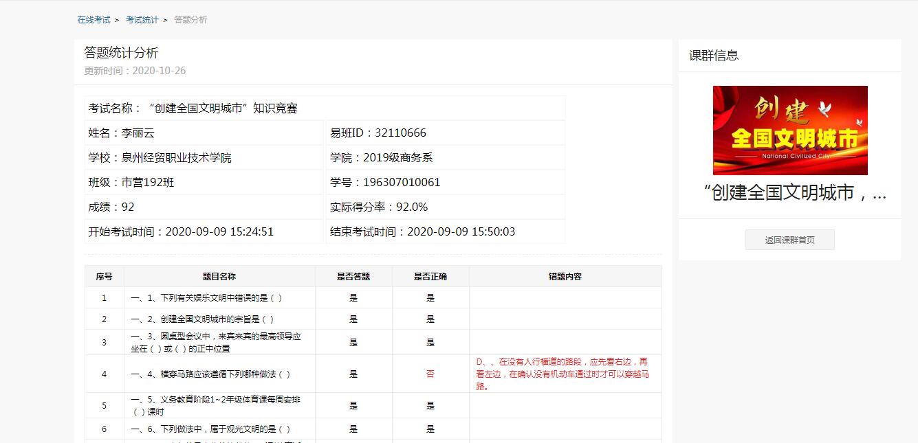 为进一步加大泉州市深化创建全国文明城市的宣传力度,提高我院师生对创城工作的知晓率、参与率和支持率,保持良好的创城测评环境,学生处于2020年9月9日举办创建全国文明城市线上知识竞赛活动。